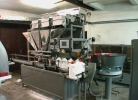 Plnící a uzavírací linka na plnění pracího prášku do plastových kanystrů.